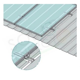 Questo kit di staffaggio serve a montare i pannelli su tetti in lamiera grecata o su guaina ardesiana.
